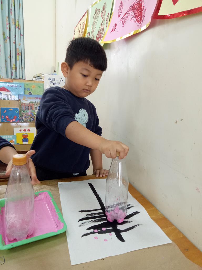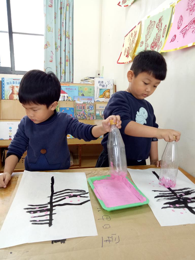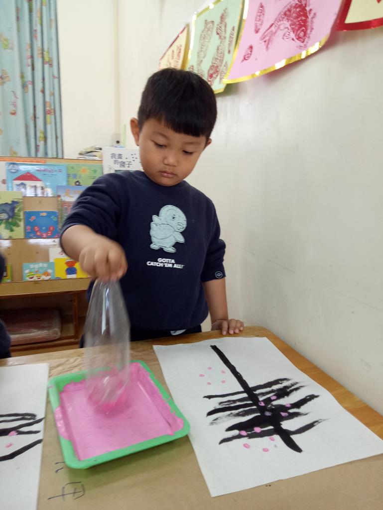畫出樹枝~再蓋印出花朵喔!!