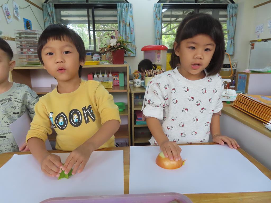 哇!蔬果變變變 秋葵變成朵朵花 楊桃變成天上星 美麗的蔬果蓋印完成囉!