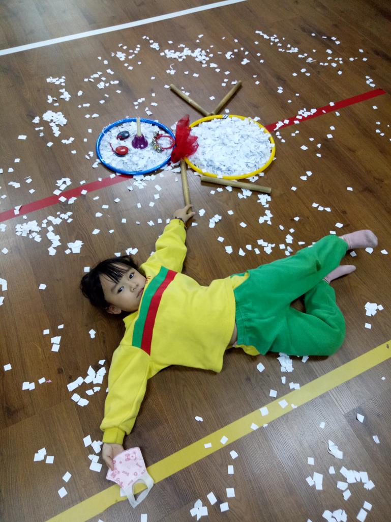 灑紙片下雪花~變成小雪人